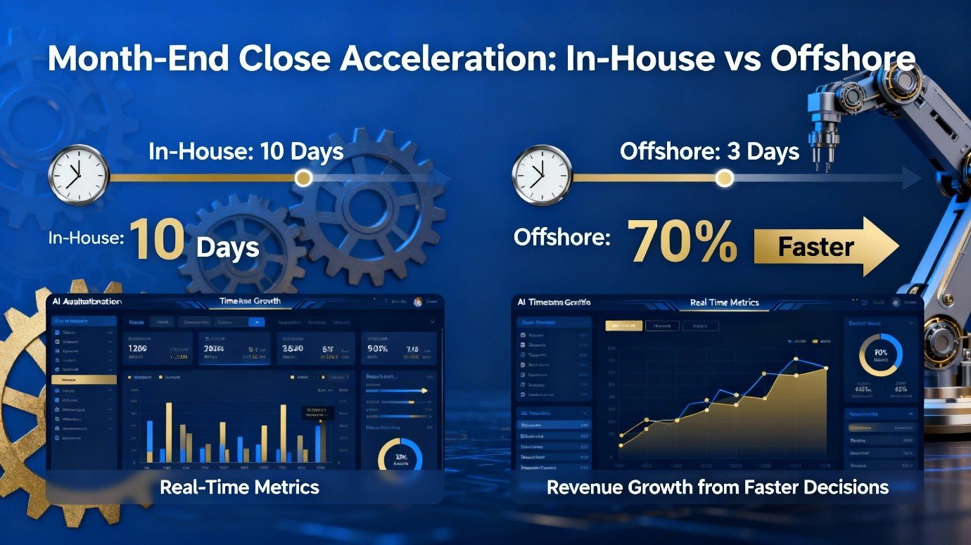Offshore teams leverage technology like cloud accounting (QuickBooks, Xero) and AI automation to accelerate transaction processing and reconciliations. This reduces month-end closes from 10 days to as little as 3, giving firms faster financial visibility and better decision-making.