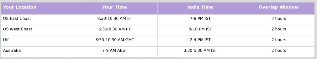 ✅ Response times under 2 hours during overlap
